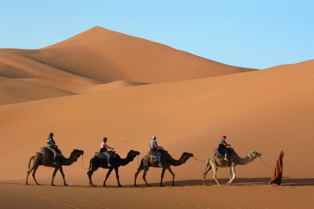 Merzouga, where you will spend the night near the majestic sand dunes of the Erg Chebbi desert.