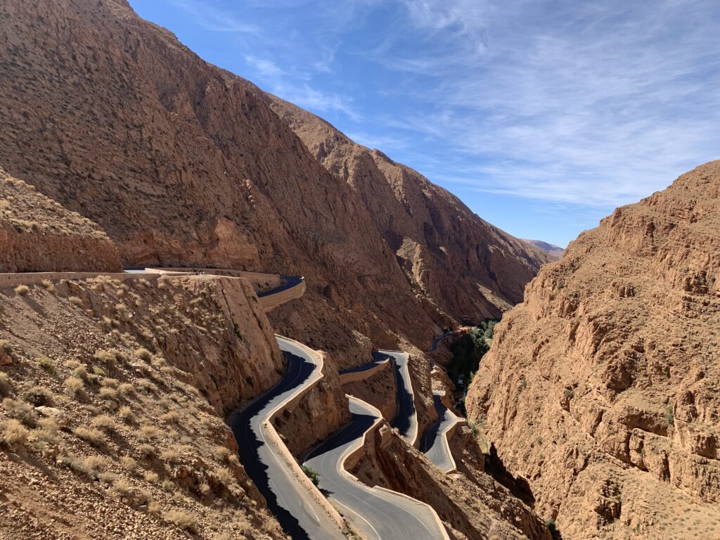 The next morning you will want to wake up early to enjoy the magical sunrise among the sand dunes. After a refreshing shower, you will have breakfast at the camp followed by a camel ride. We begin our drive back to Erfoud, next we are off to a small village called Jorf. In this village you will visit an underground system of irrigation, a marvel of technology from ancient times. After Jorf, we will continue on to Todra valley with its beautiful palm orchards and old Berber-Jewish Kasbahs. We will explore the Todra gorges, a splendid series of 300 m deep, limestone river canyons. After lunch in Todra valley we will continue on our way to Dades valley where you will spend the night in a lovely hotel .
